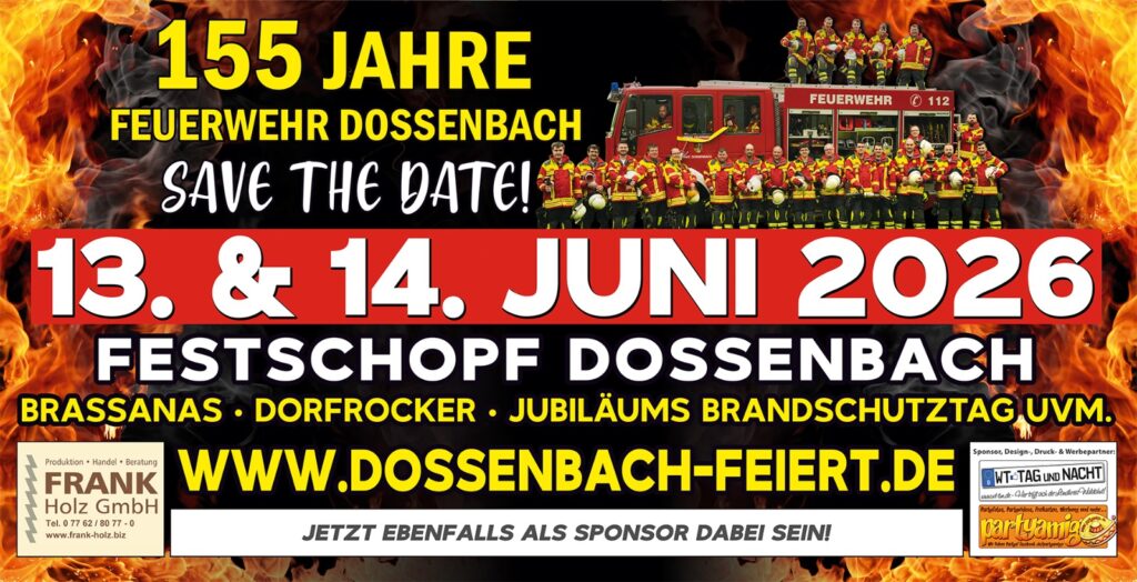 Die Webseite wird demnächst umgebaut, denn nach dem Fest ist vor dem Fest! Weitere Infos zu 155 Jahre Feuerwehr Dossenbach folgen bald!